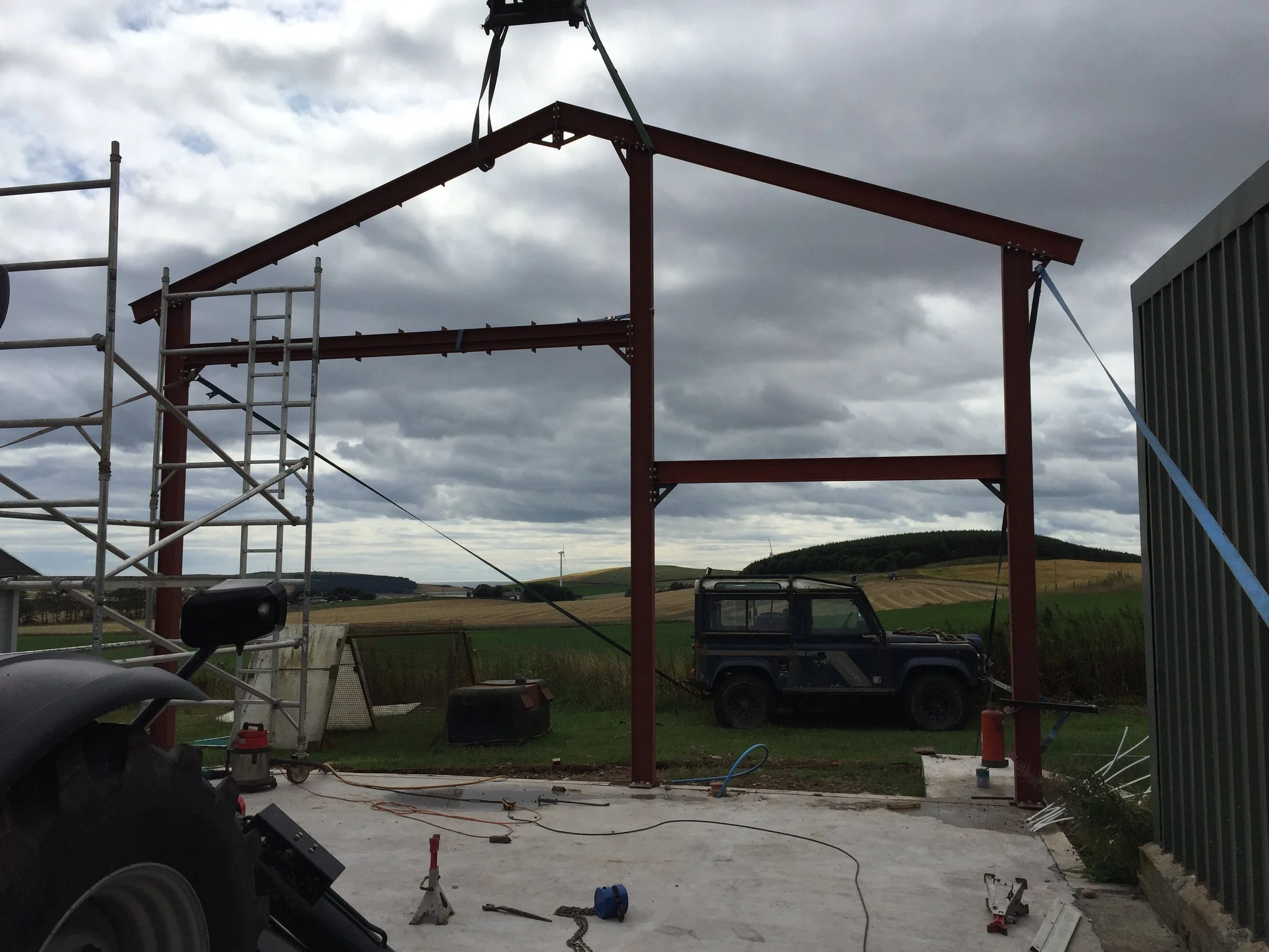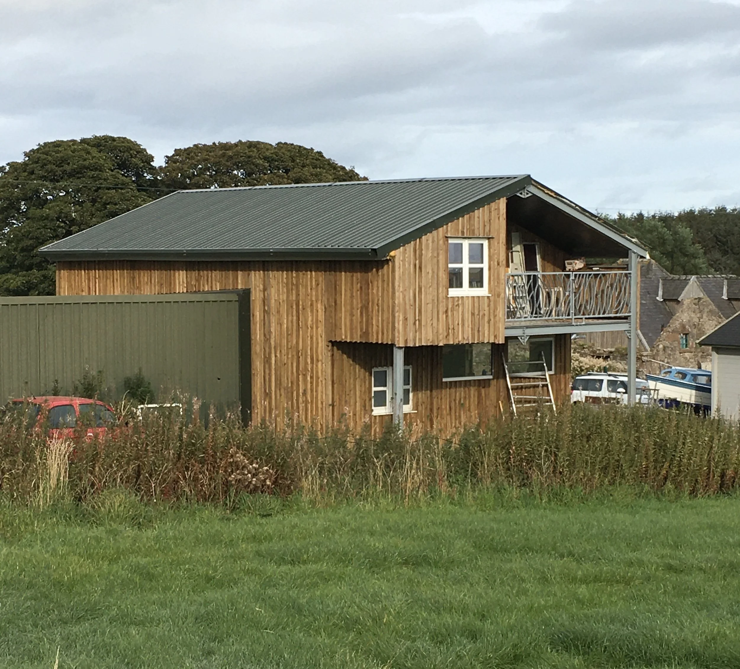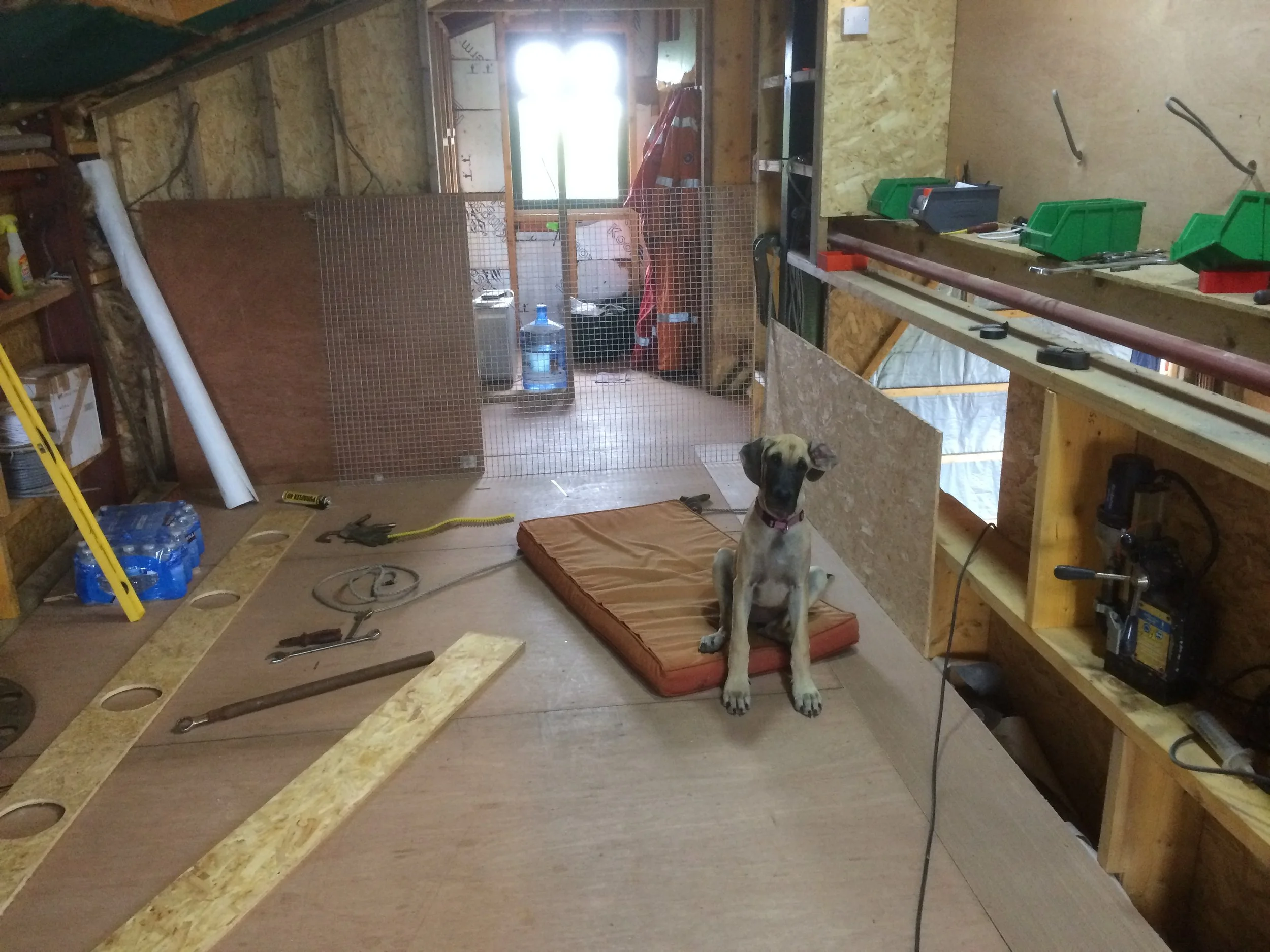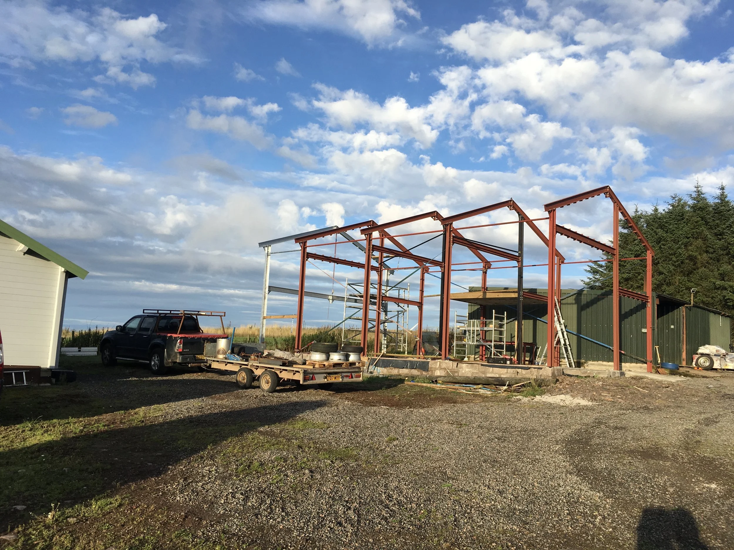 It is a two story steel framed office with everything apart from the concrete base being done by myself. Downstairs there is a double height section that will allow a 2 post lift to be installed at some point. Above this is a storage area which has been taken over by the dogs as they can use the large window at the end for watching the world go past.