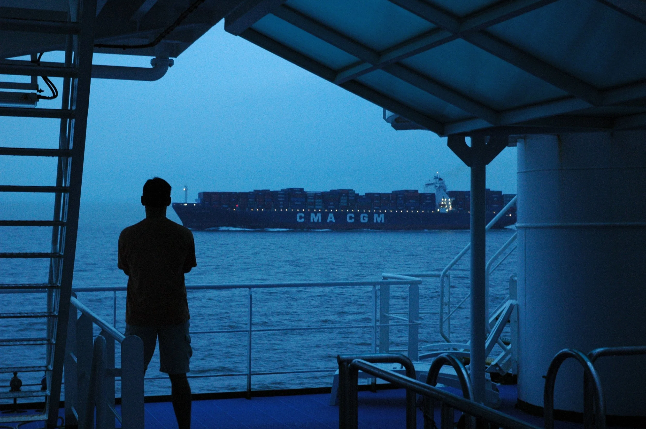 A long exposure over the stern of an LNG carrier