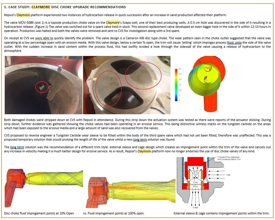 Project managed and engineered with various sub vendors choke replacement and refurbishment for Repsol Claymore platform after they suffered two production choke failures in rapid succession. Bringing in over £300K to CVS over numerous orders