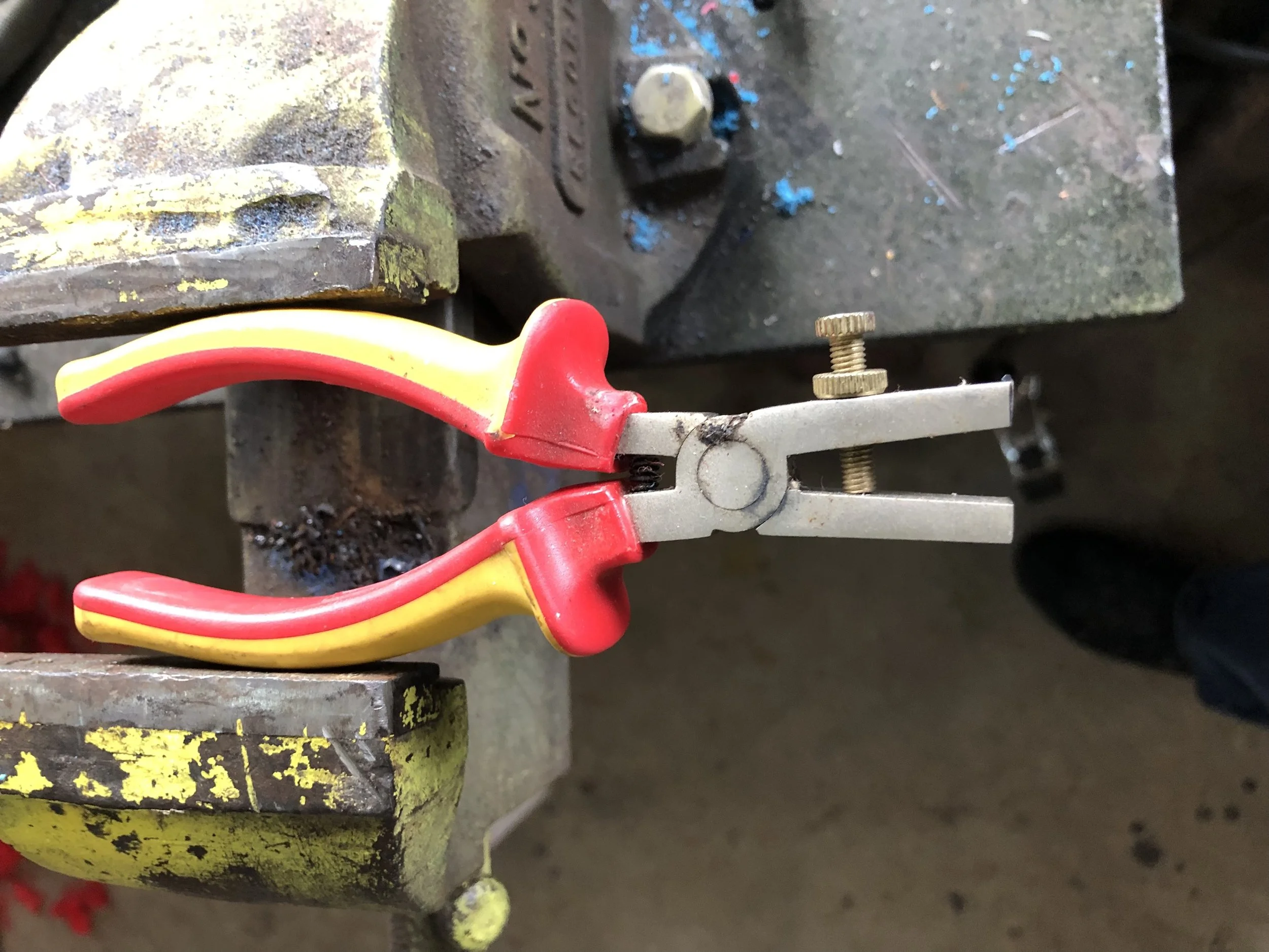 First up is draw a line across the ends of the soon to be slightly shorter wire strippers. A straight line at about 90º to the centerline of the pliers