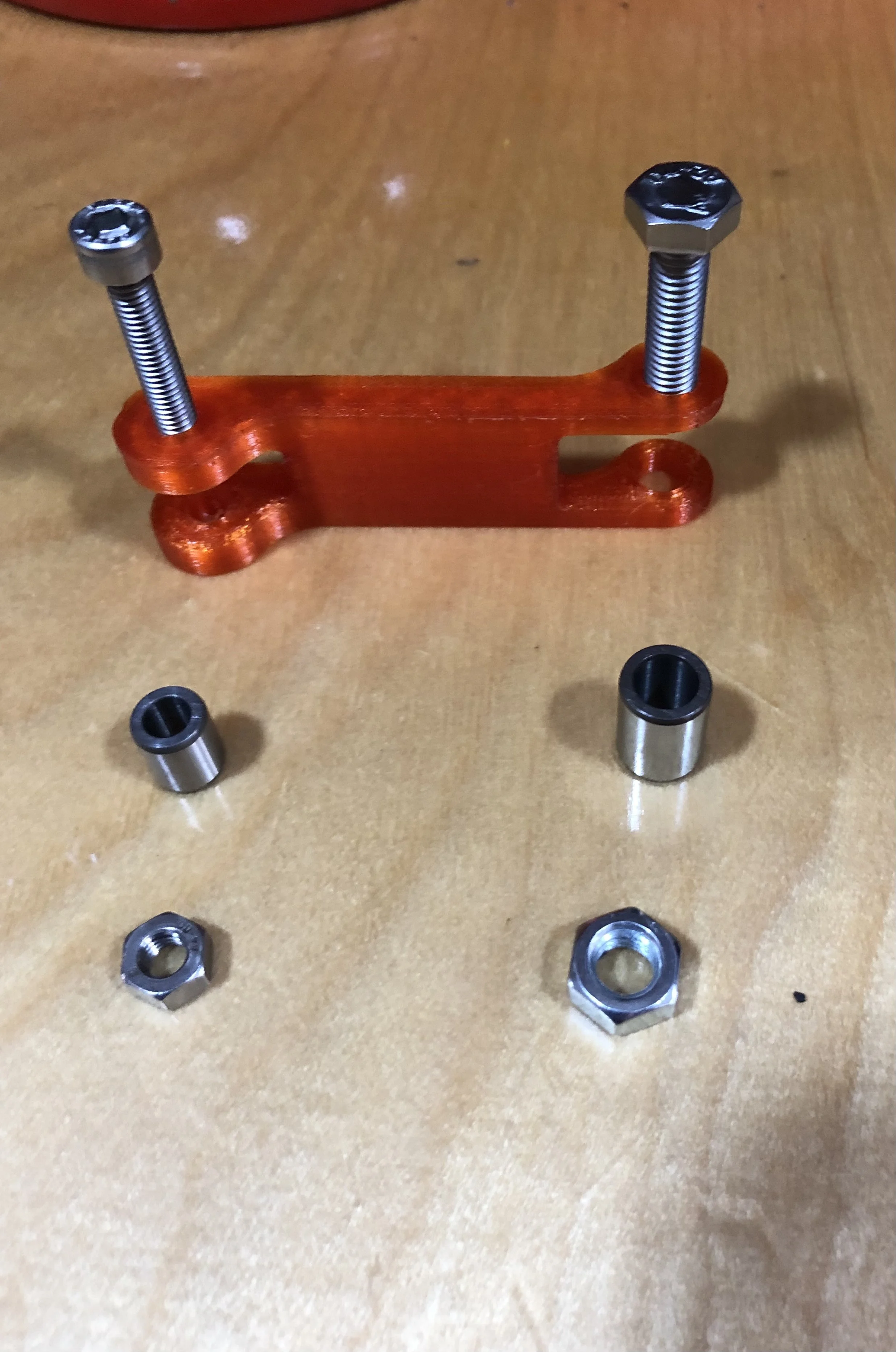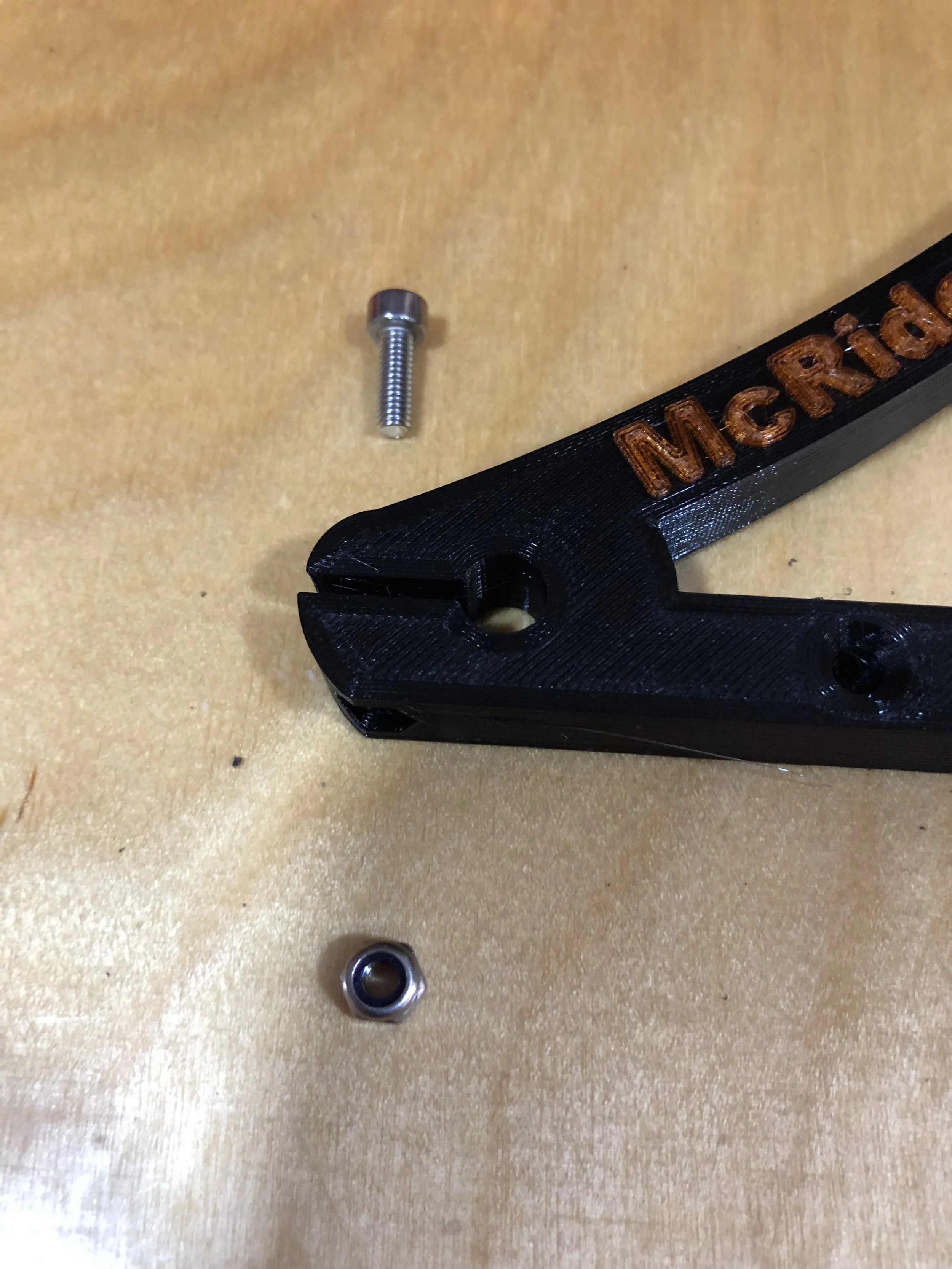Using an M4 x 12mm counter sunk and an M4 nut pull the two sides of the arm together. This can be left our but you will experience more twist in the arm.