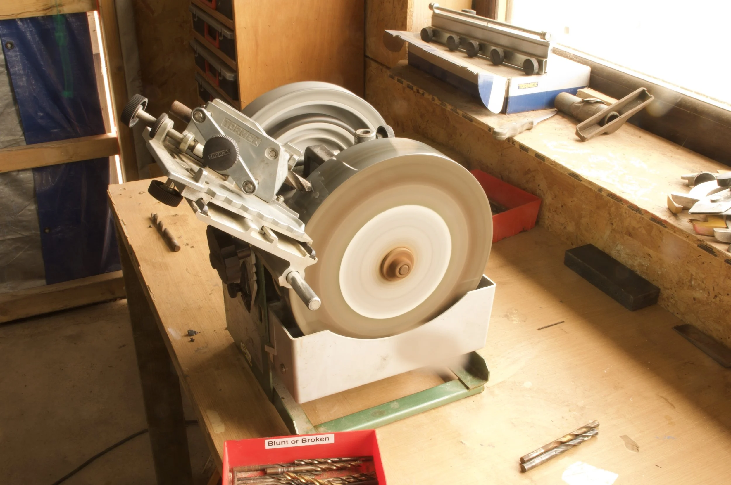 First up is the Tormek 2000 which is the machine that spawned Barras Blades, it’s a water cooled grinder which has got us out of many a jam. It’s speacilisim is knives and chisels but it can be bone achingly slow.